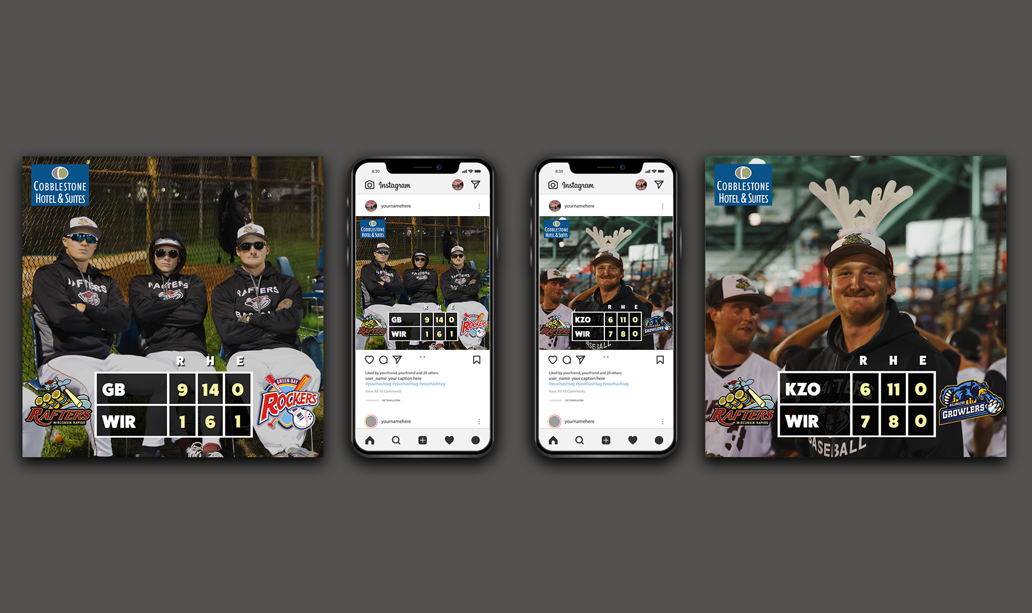 The objective for this series was to create different social media graphics to keep Rafter fans up to date with upcoming events, games and scores. I created layouts for each, used photographs from the photography intern, and used sponsor logos accordingly. The social media graphics that I created include Week at a Glance,